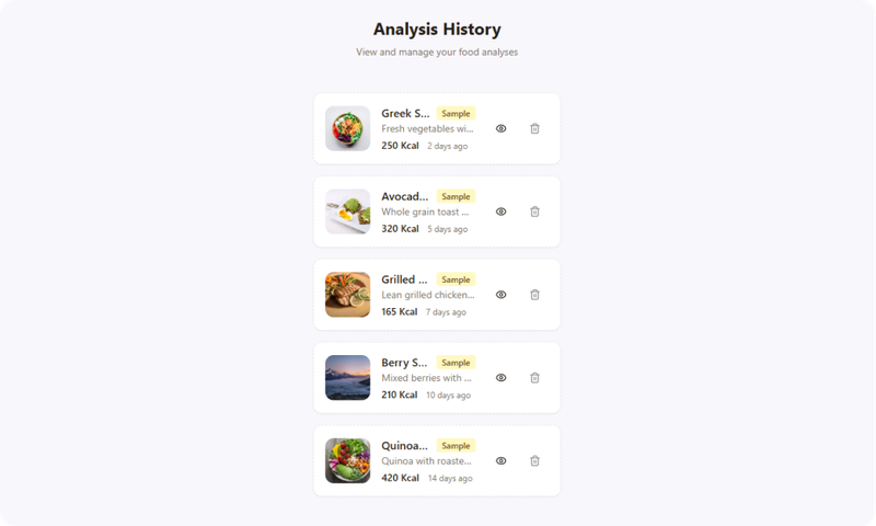 분석된 식사를 저장하여 사용자가 시간에 따른 식습관을 추적할 수 있습니다.