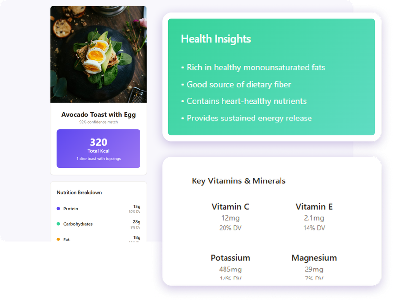 Food Calorie Analyzer는 사진을 통해 음식을 인식하고 즉시 칼로리를 추정해 주는 모바일 앱입니다. 빠르고 편리한 영양 정보를 제공하여 사용자가 더 건강한 선택을 할 수 있도록 도와줍니다.