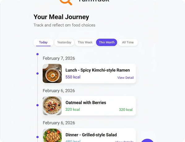 YumTrack은 영양 추적의 패러다임 전환—지루한 데이터베이스 입력에서 손쉬운 사진 기록으로의 전환을 대표합니다. 컴퓨터 비전 AI를 통해 수동 검색 마찰을 없애 일반 사용자의 일관된 추적을 지속 가능하게 만들고, 이전에는 상당한 시간 투자나 전문적인 지도가 필요했던 영양 인식을 민주화했습니다.
